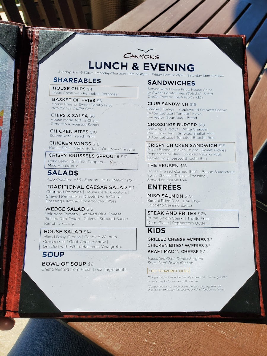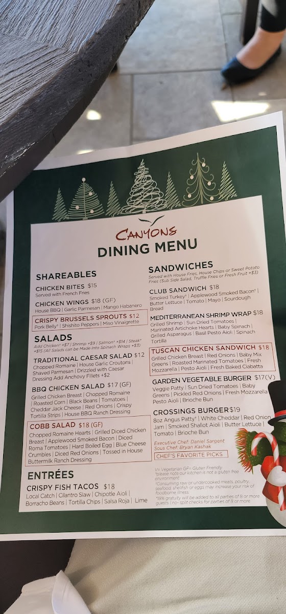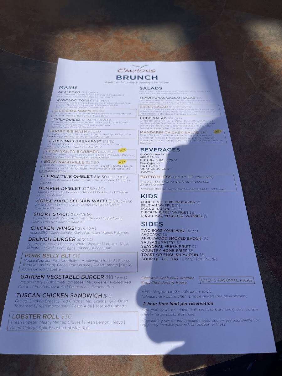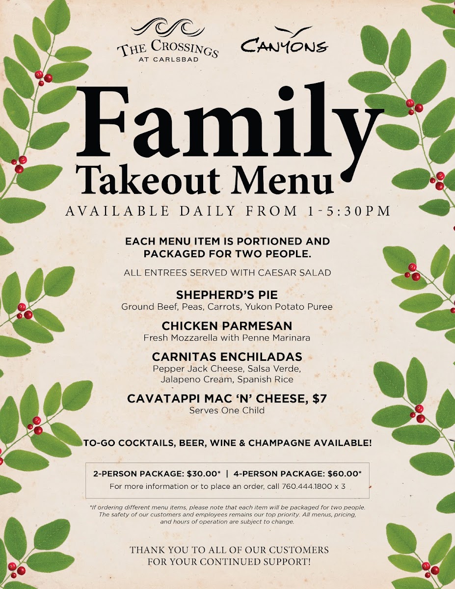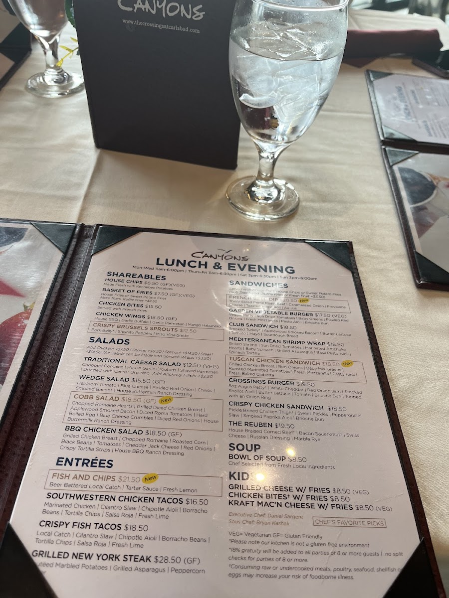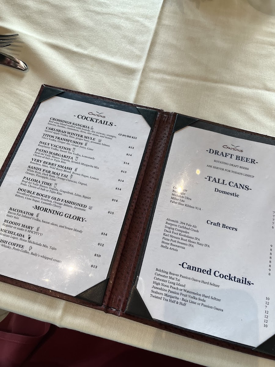 Canyons Restaurant at The Crossings at Carlsbad Menu
